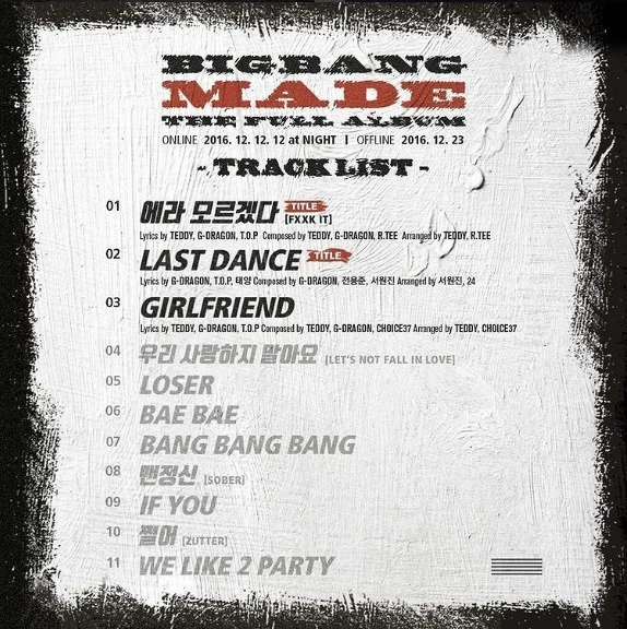 前陣子才發布TOP通過義務警察考試,並準備在明年2月9日入伍,因此趕在5人團聚前發布最新專輯,還將於明年1月7至8日在首爾舉行《BIGBANG10 THE CONCERT : 0.TO.10 FINAL IN SEOUL》演唱會與粉絲見面。另外,BIGBANG所屬YG娛樂公司也透露因為正在準備回歸專輯,今年12月2日在香港舉辦的2016 MAMA音樂頒獎典禮,BIGBANG與旗下歌手最終決定不參加,看來要看到5人一起出席只剩下這張專輯回歸與明年的首爾演唱會了!