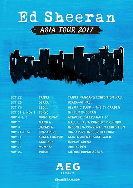 艾德的粉絲請注意!AEG PRESENTS ASIA剛剛在官方Facebook公布紅髮艾德將於今年10月開始進行亞洲巡迴演唱會,同時也公布了台灣場的開唱日期,從官方公布的圖片來看,目前台灣應該是亞洲首場,將在10月22日舉行!