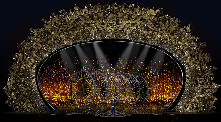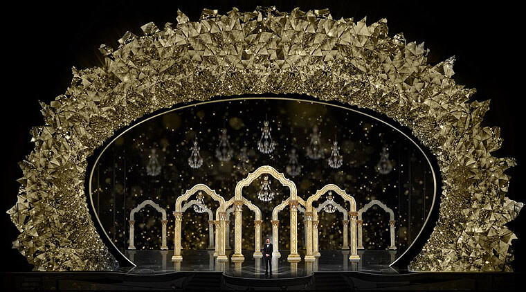 奧斯卡金像獎於台灣時間今日上午在美國洛杉磯杜比戲院揭曉,本屆除了來賓夠閃,夠有派頭,就連頒獎舞台也是氣勢輝煌。由來自英國的舞台設計Derek McLane操刀,帶來4500施華洛世奇水晶打造的典雅舞台。這是Derek第六年為奧斯卡設計頒獎舞台,由內而外延伸的視覺效果,在眾多水晶的映襯之下,展現出與過去截然不同的視覺饗宴,既霸氣又雅逸。
