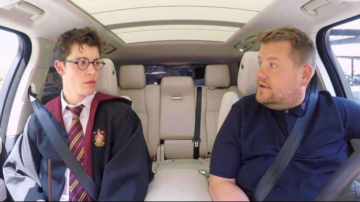 節目中他不只和柯登在車上演唱招牌歌曲〈There's Nothing Holdin' Me Back〉、〈In My Blood〉、〈Mercy〉、 〈Treat You Better〉之外,還cosplay成哈利波特,他表示自己是一個重度哈利波特迷,第一次見到飾演妙麗的艾瑪華森Emma Watson還緊張到冒汗。