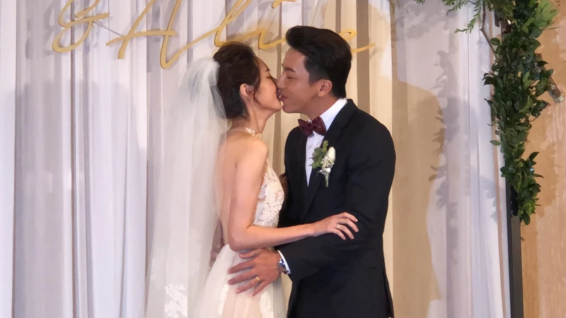 根本是超呆萌新人!柯佳嬿、坤達婚禮登場,小倆口互叫「老公、老婆」甜蜜擁吻大放閃