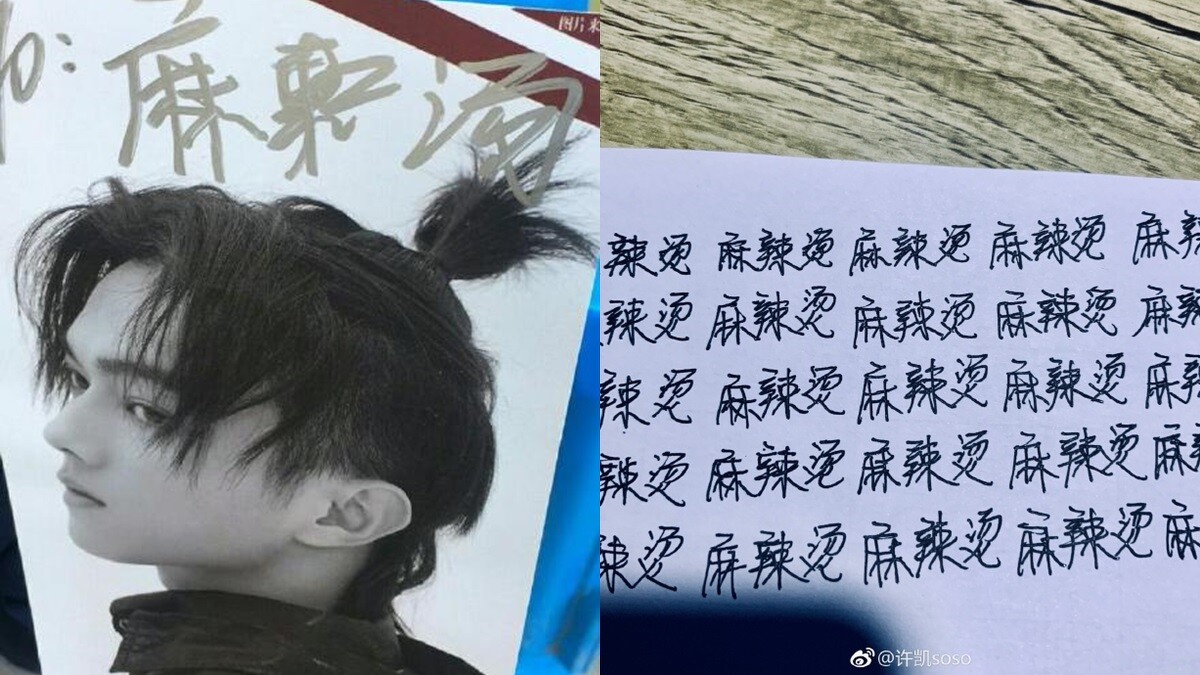 有網友表示他有天偶遇許凱時,希望他在照片上親筆簽下「麻辣燙」三個字,不過曬出的親筆簽名照上,貌似許凱只正確地寫下了「麻」,除了「辣」感覺亂寫,「燙」底下更少了一個火,被許多網友譏罵連字都不會寫,還能當什麼偶像。