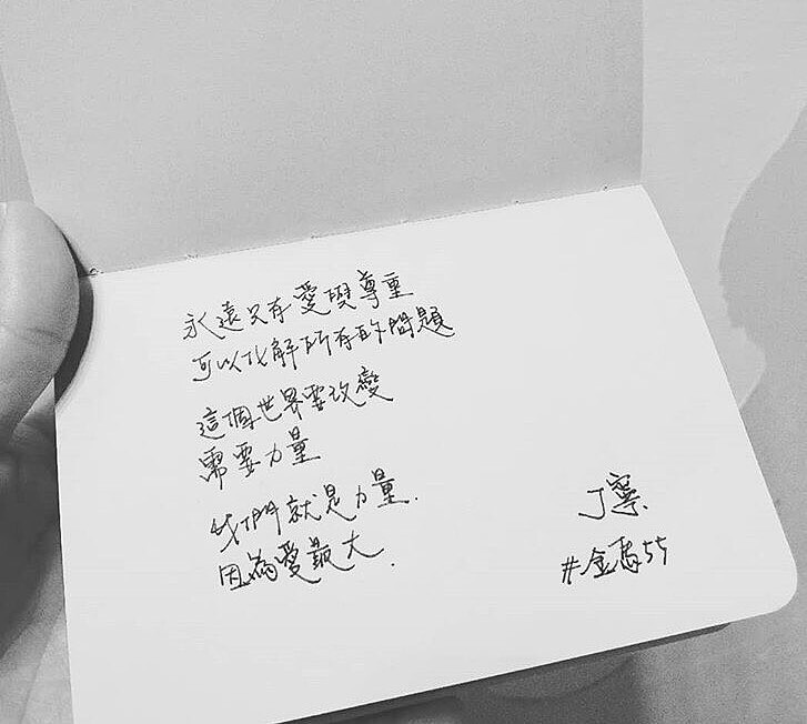 ↑丁寧手寫下的感言