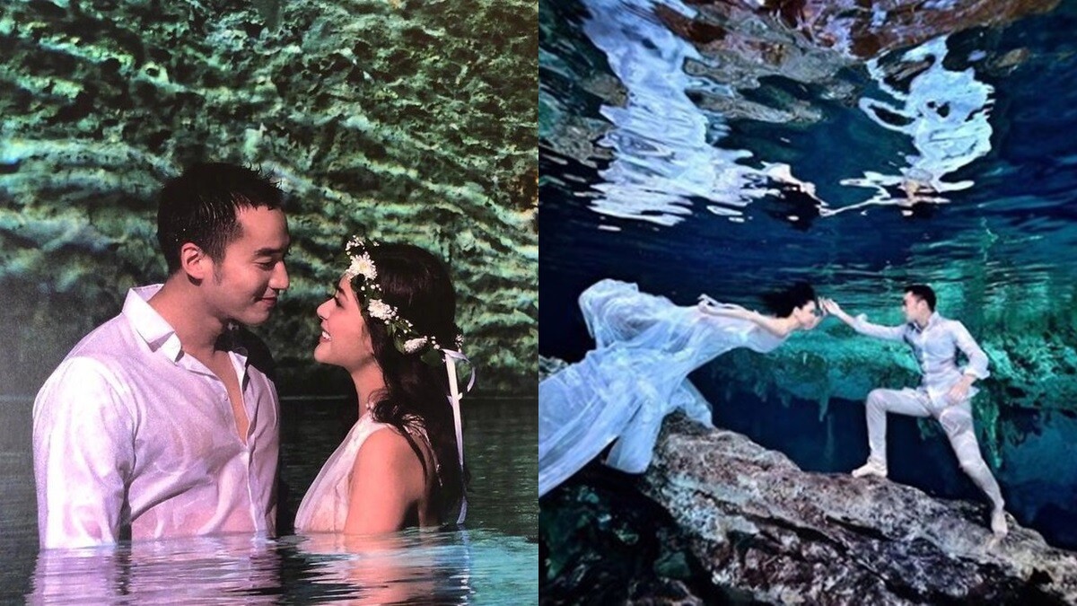 阿嬌與老公拍攝水底婚紗照
