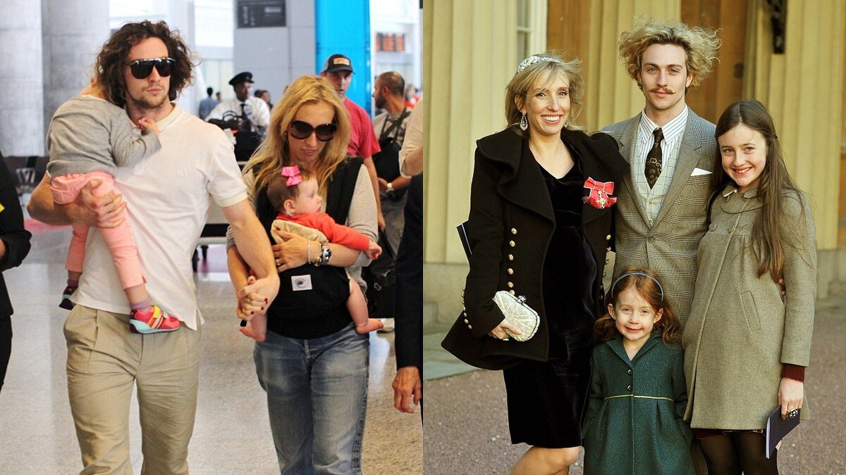 亞倫強森和珊姆最早因戲結緣,2009年出演《搖滾天空:約翰藍儂少年時代》後開始交往,當年亞倫剛滿19歲,珊姆42歲,隔年珊姆就為他生下大女兒Wylda Rae,2012年又生下二女兒Romy Hero,也在同年正式結婚,不過珊姆在這之前曾有過一段婚姻以及2個小孩,因此現在可是一家6口的大家庭。