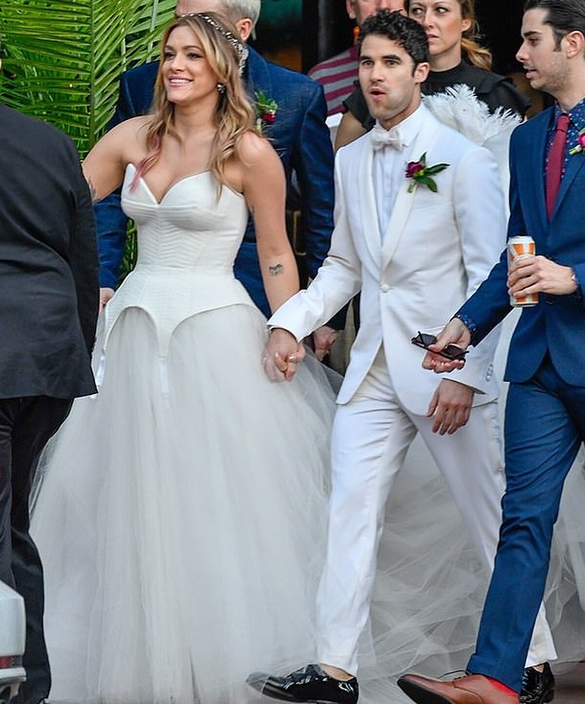 這回他和女友Mia Swier將邁向人生另一個階段,選在上周於紐奧良舉辦婚禮,身穿全白西裝的他宛如白馬王子,和妻子坐在紅色勞斯萊斯上甜密合影,完全就像是拍電視劇般,而他的《歡樂合唱團》演員好友們也都受邀參與,包括麗婭米雪兒Lea Michele、寇德歐沃斯崔Chord Overstreet、岑勇康Harry Shum Jr.以及約翰史坦摩斯John Stamos等都到場給予祝福。