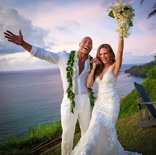 婚禮是在夏威夷舉行,巨石強森和Lauren於2007年交往至今長達12年,兩人育有 Jasmine Lia和Tiana Gia,不過他早先有過一段婚姻,和前妻Dany Garcia生的大女兒現在已經18歲。