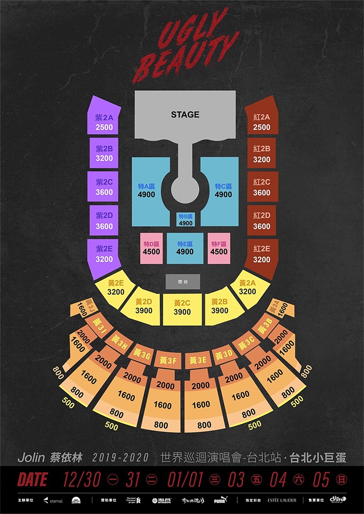 ※ 票價:$ 4,900 / $ 4,500 / $ 3,900 / $ 3,600 / $ 3,200 /