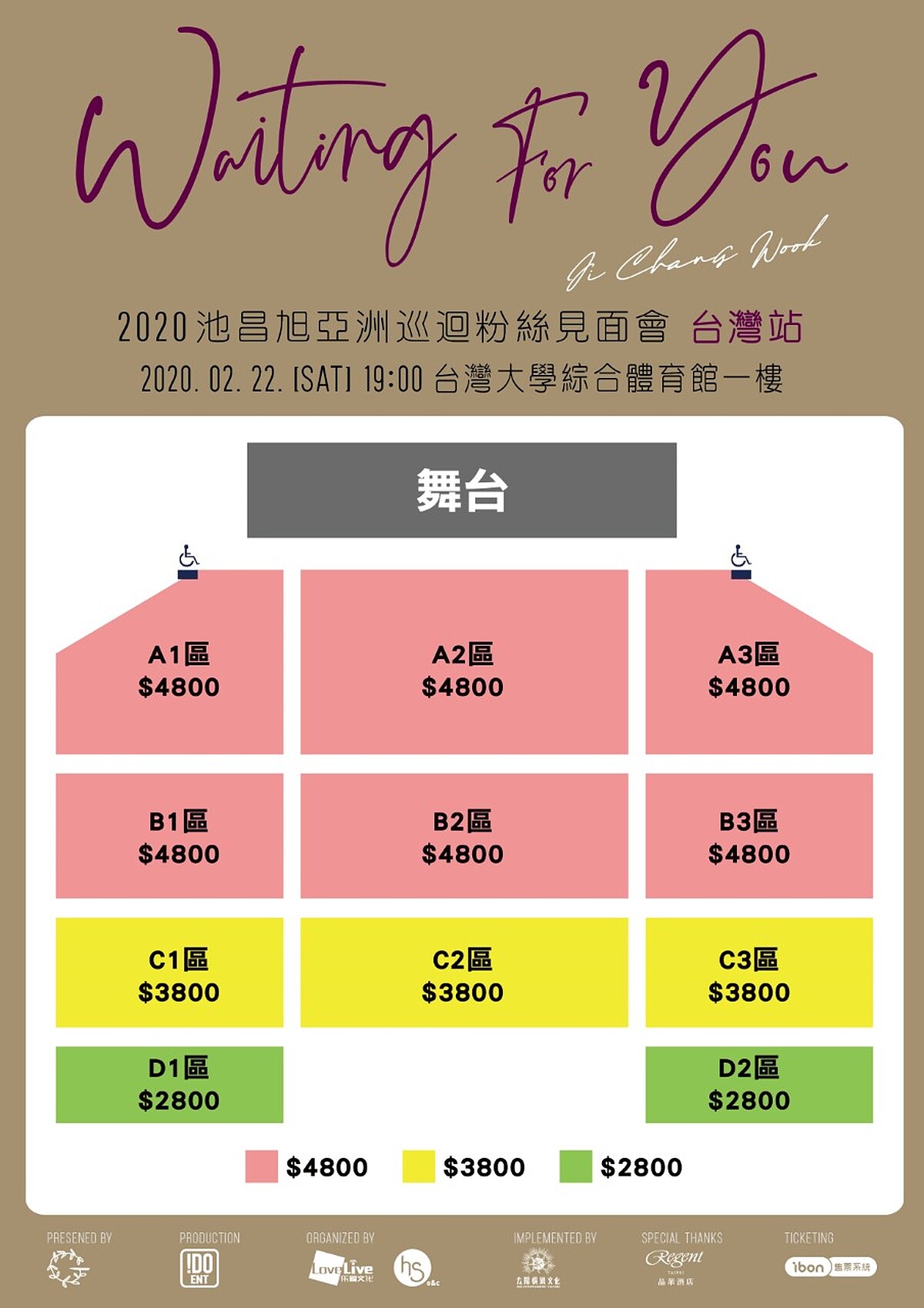 票價:$4800/$3800/$2800/身障席$2000(皆為座位席,對號入座)