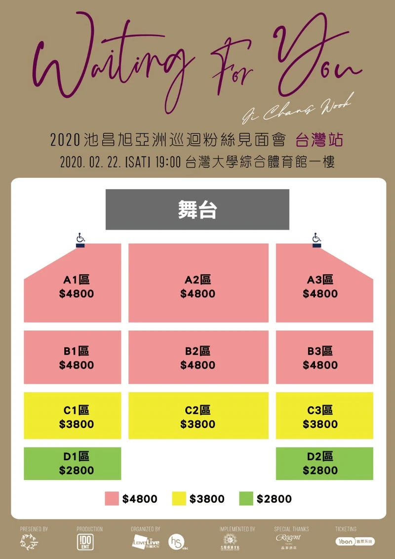 《Waiting for you 2020池昌旭亞洲巡迴粉絲見面會-台灣站》將於2020年2月22日臺灣大學綜合體育館一樓舉行。