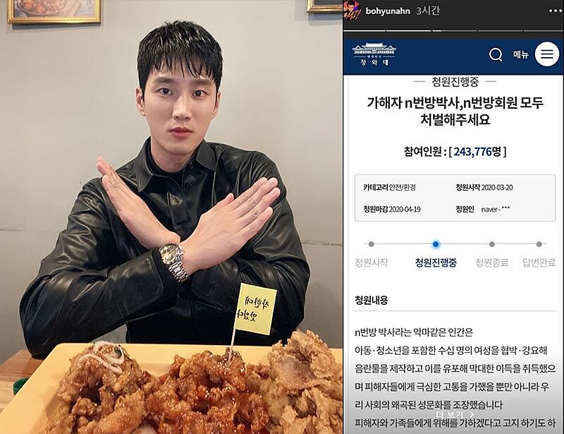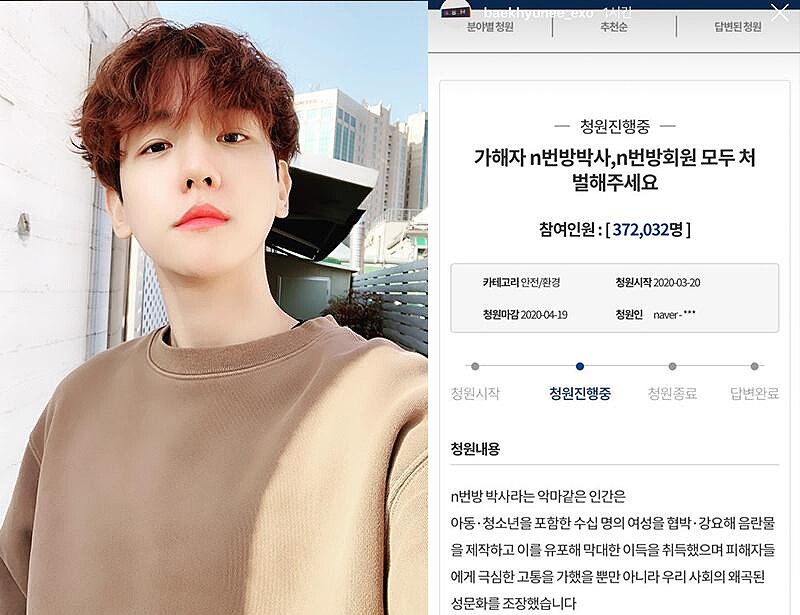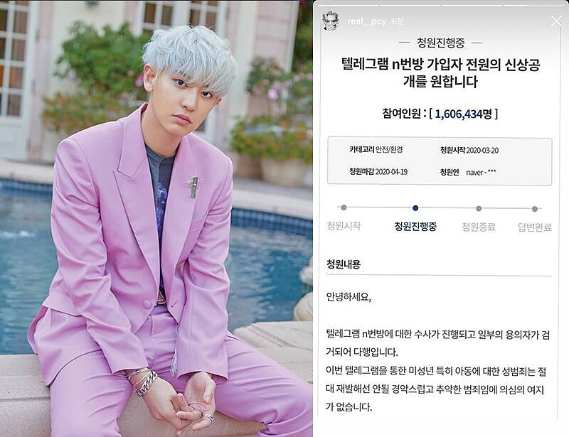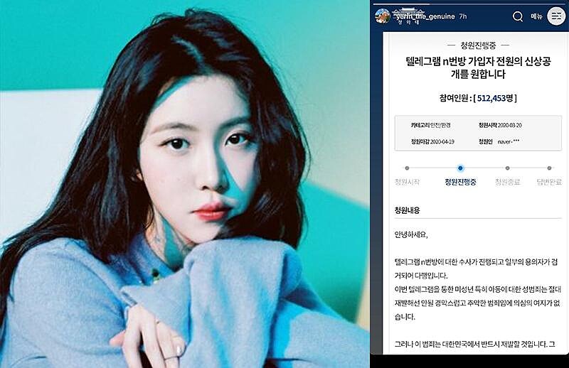 如此駭人聽聞的事件公開後,引發眾多明星紛紛力挺發聲,請求大眾登上青瓦臺網站請願,以「公開N號房嫌犯個人資料和相片」和「公開N號房所有會員個人資料」要求韓國政府能夠全力追查,期望將「N號房」犯罪者的資訊透明公開化,兩項連署在短短兩天內就多達兩百多萬人參與,打破歷來青瓦臺連署人數紀錄。