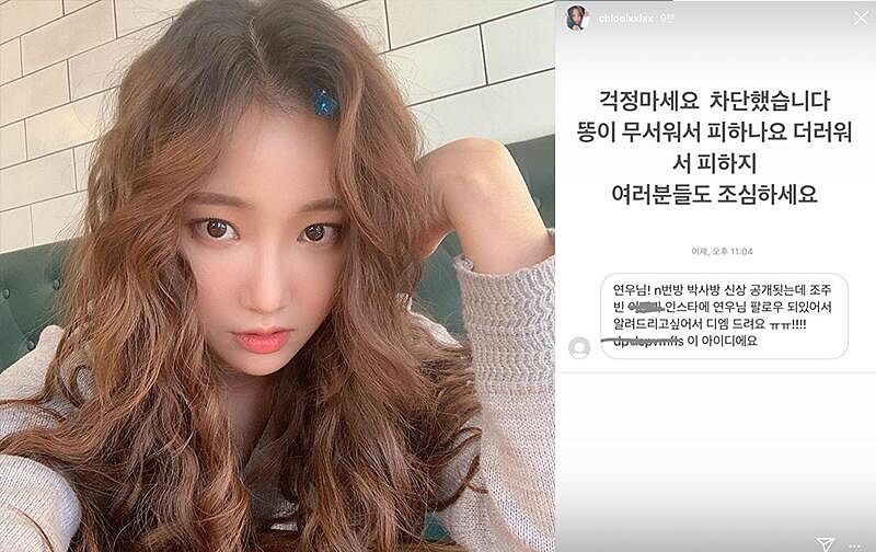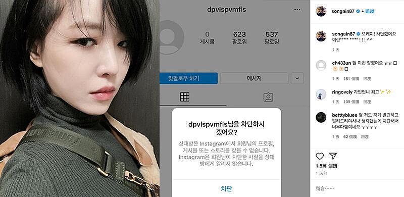 女團 Brown Eyed Girls 的成員佳人發現自己被關注後,馬上發文公開主嫌的帳號,並寫道:「OK!已經封鎖,這種***** *****!^^」
