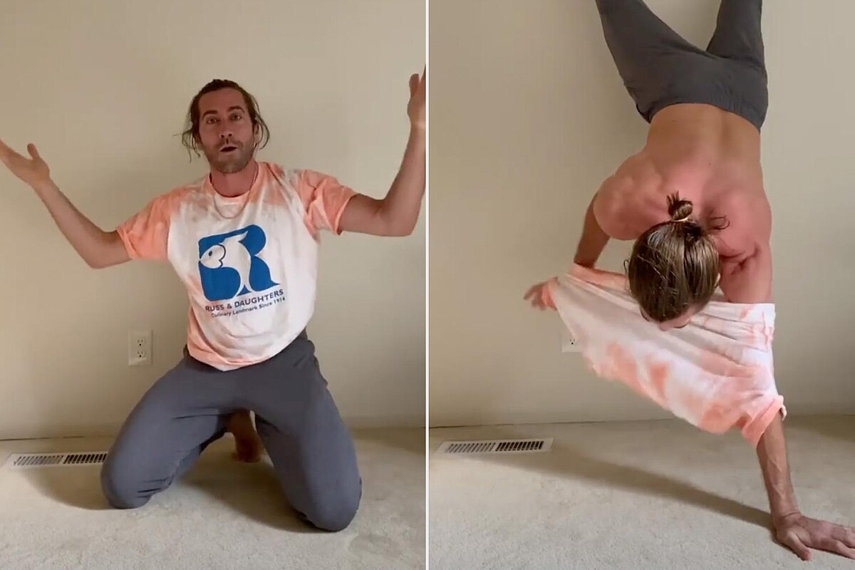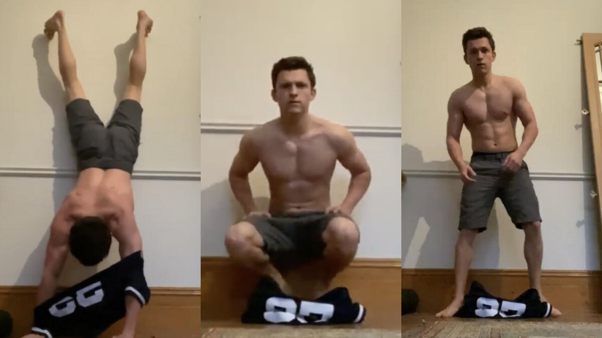 23歲的荷蘭弟湯姆霍蘭德本來就是個鬼靈精,早先玩伏地挺身挑戰後,這回又有新創意,發起「倒立穿衣」挑戰。可以看到他半裸上身靠在牆上倒立,努力的把T恤穿起來,看到他全身脹紅、精壯肌肉身材盡現,而讓粉絲們引發遐想的,則是他邊做邊大口喘氣,網友們害羞狂喊:「必須把音量開小聲!」