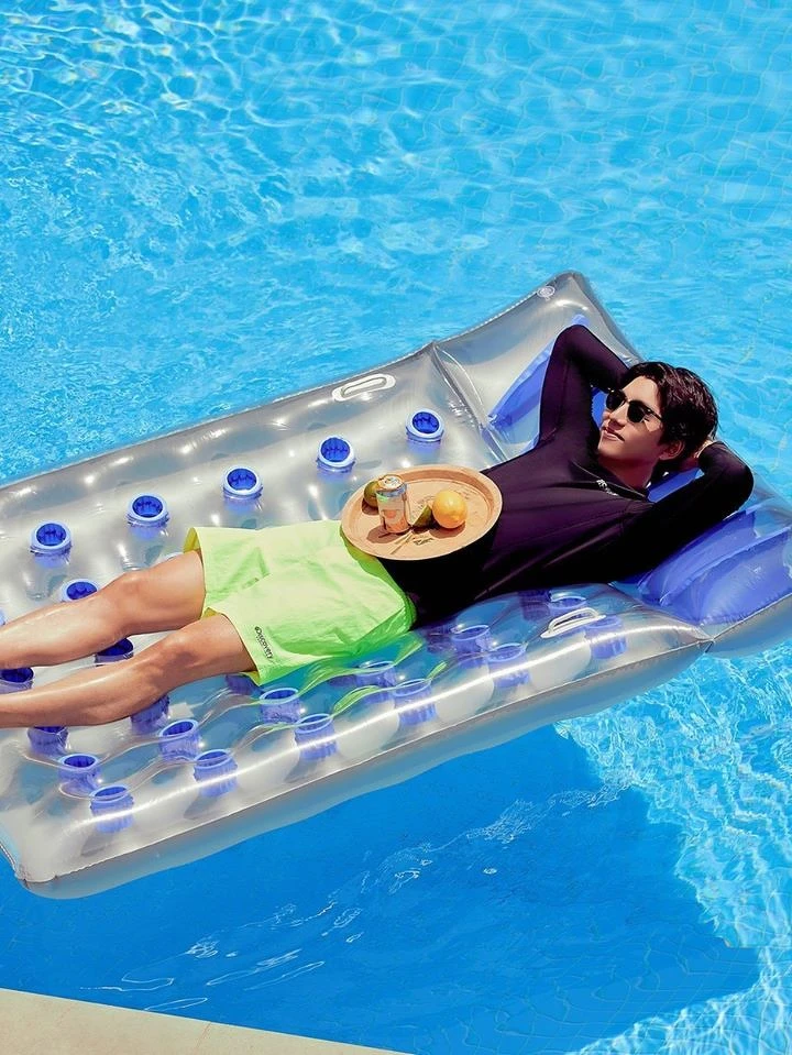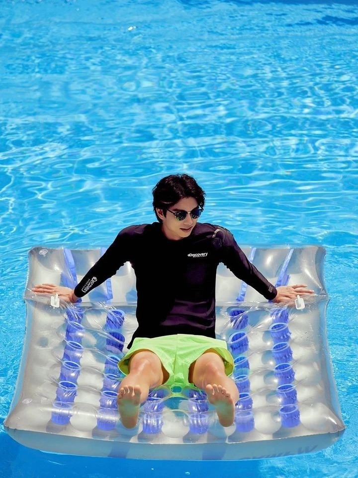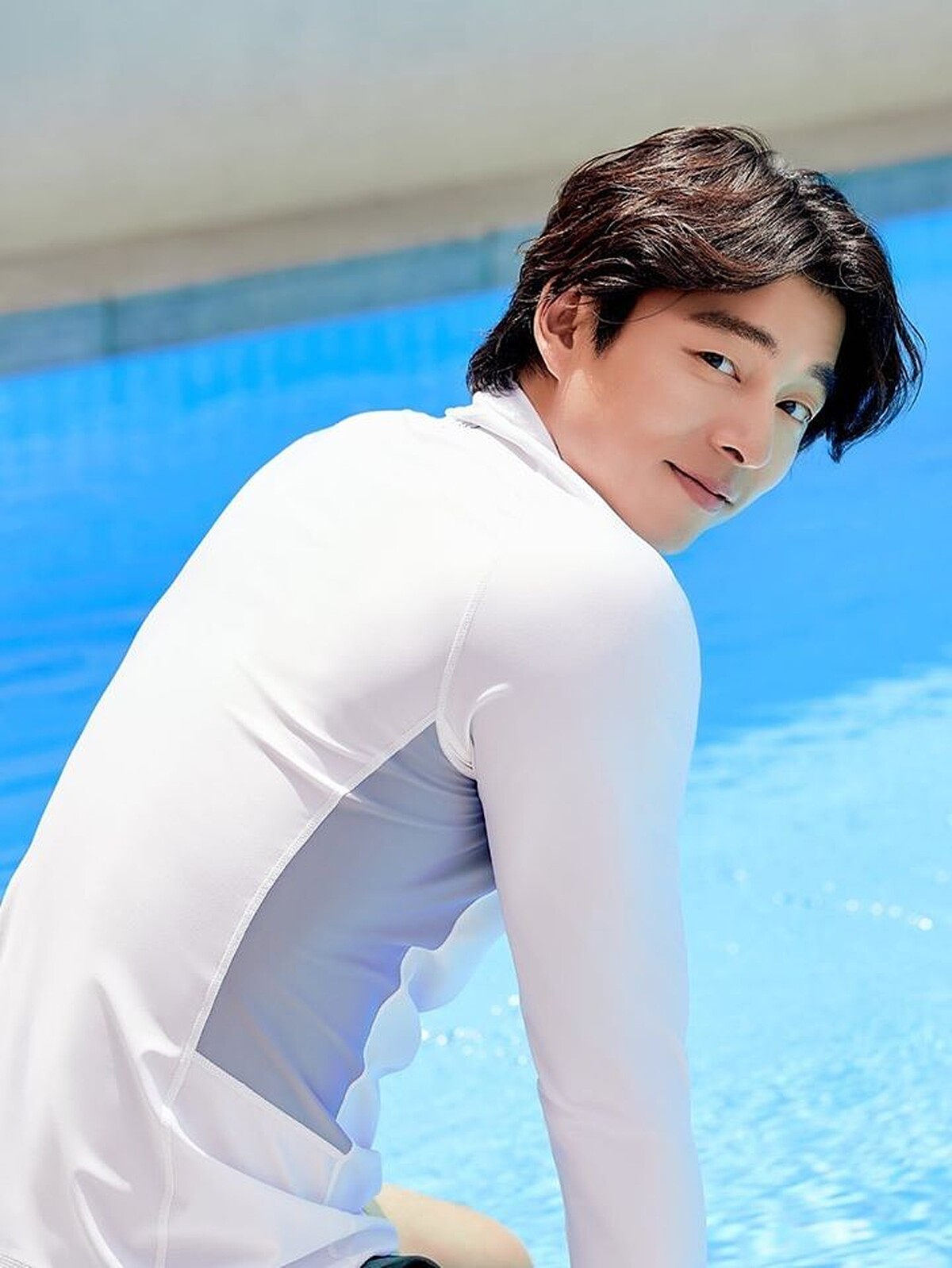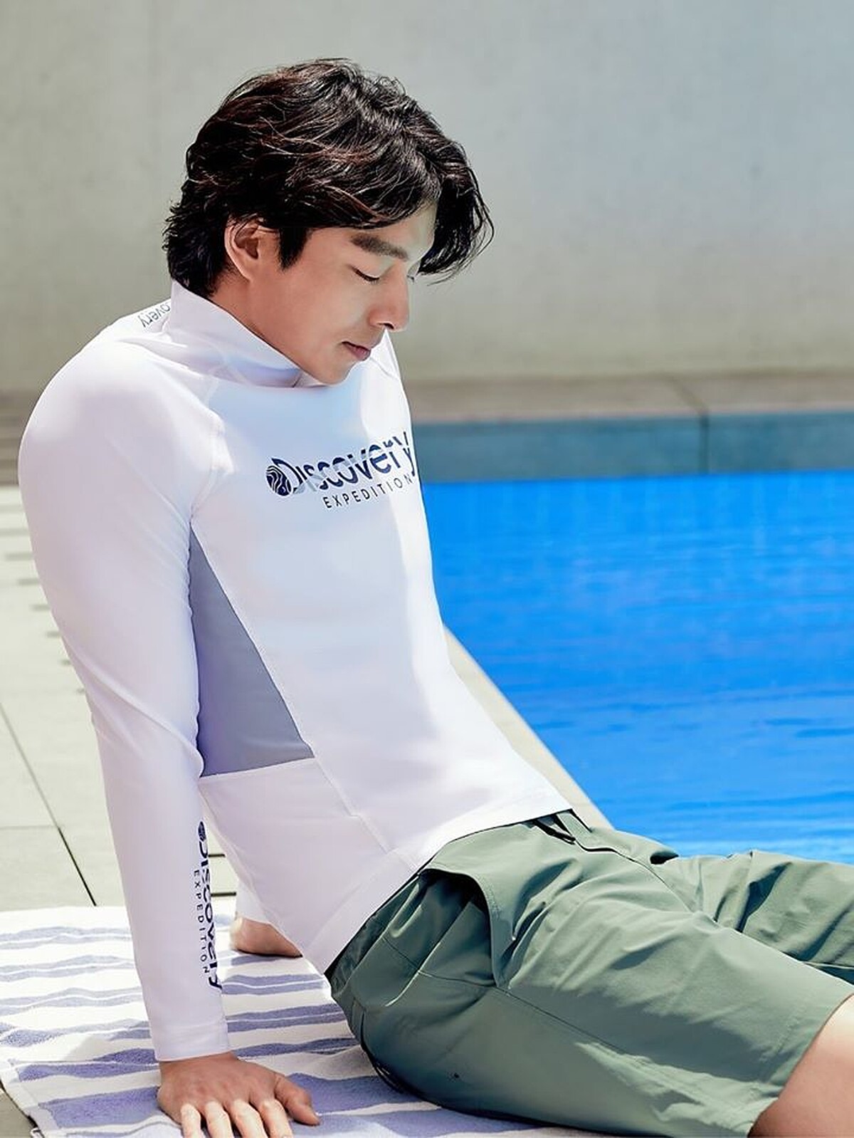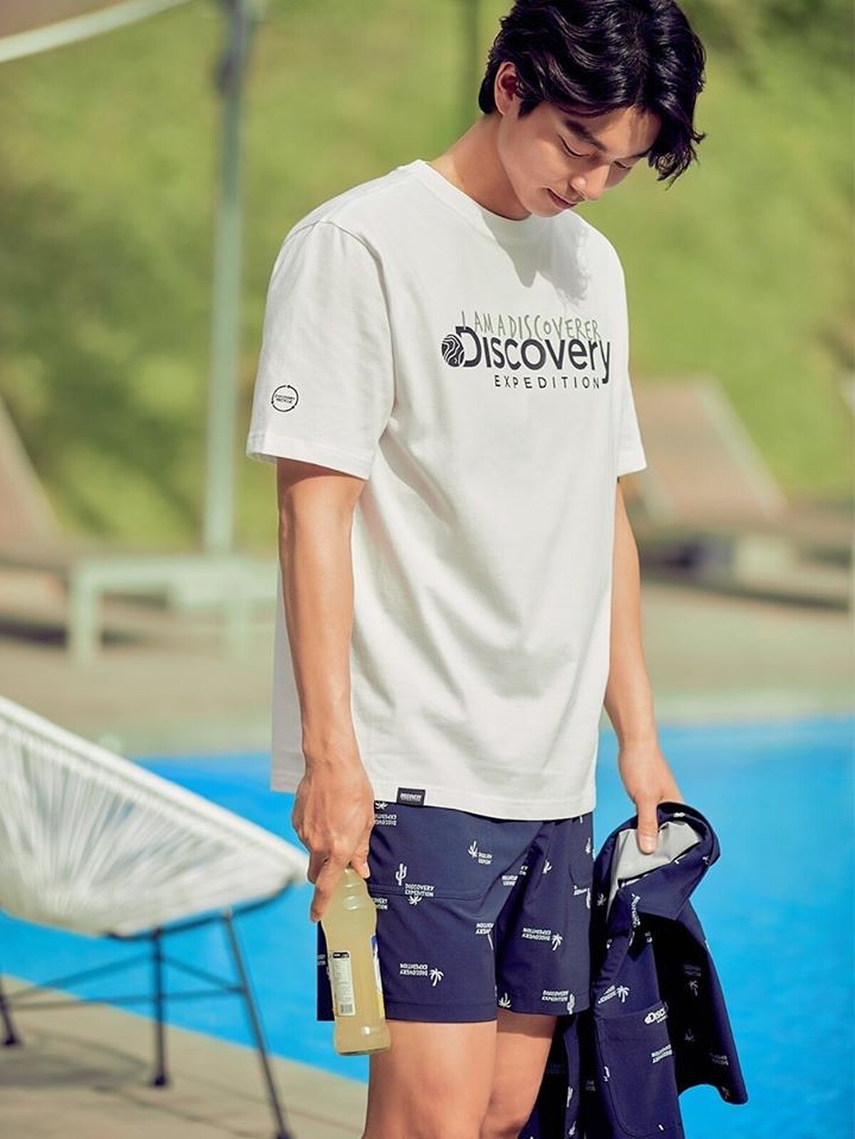 另一個戲水系列的服裝,搭配自然愜意的色系,加上清涼感十足的水池,也想和歐巴一起跳進水池裡,享受專屬的「玩水之歡」(誤)