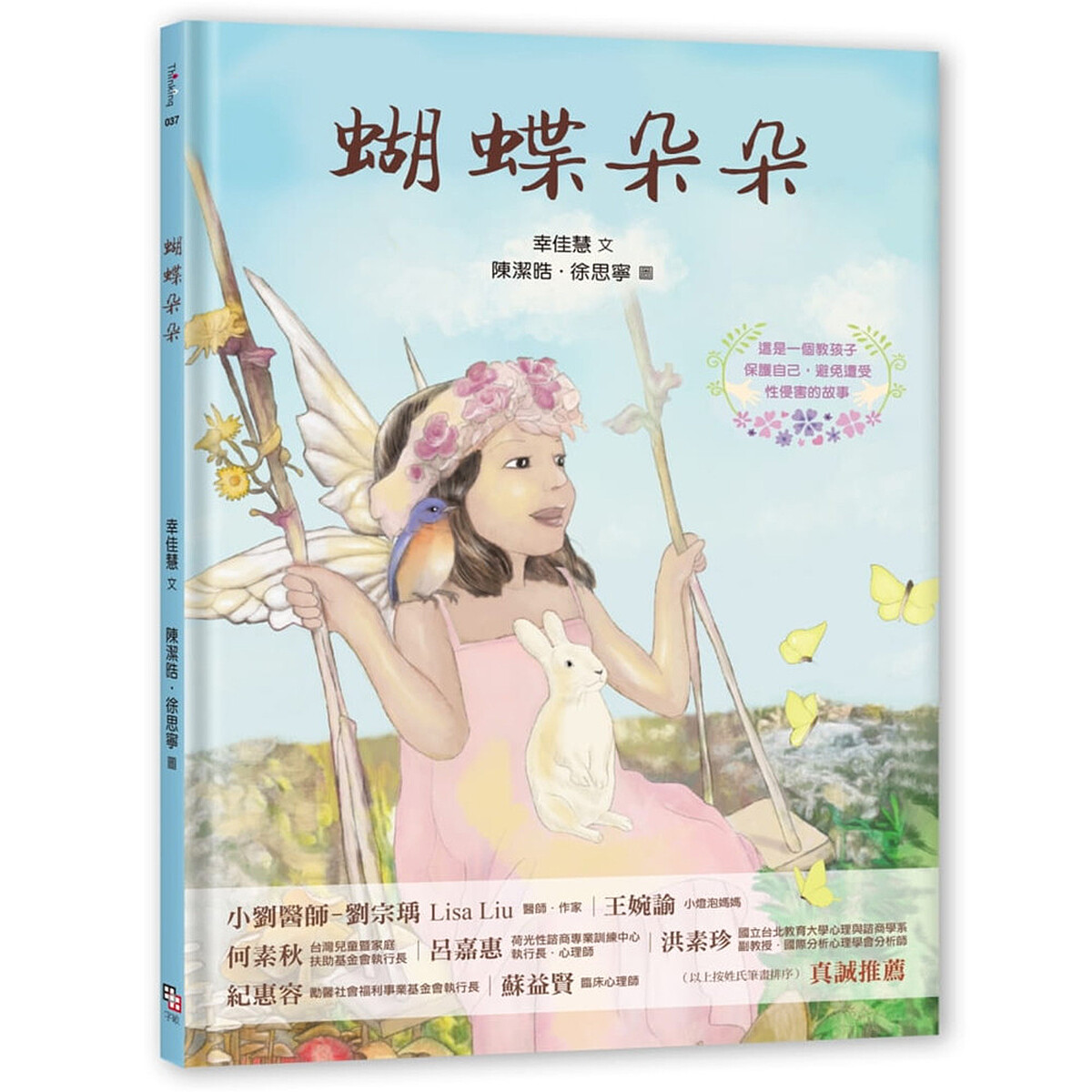《蝴蝶朵朵》是由已逝繪本作家幸佳慧所做,故事敘述名為朵朵的小女孩,由於母親結交新男友,母女倆搬到新男友(叔叔)的家住,原本看似母女倆春天來臨的過程,卻暗藏著「家內侵害」的危機,朵朵就像許多遭受痛苦的孩子一樣,受到加害者的脅迫利誘,不敢將心中的「秘密」說出來,而母親警覺地發現後,用兔子的角色扮演,讓朵朵把內心的傷痛慢慢吐露出來,最後正義戰勝黑暗,朵朵也像是蝴蝶般,再次展翅高飛。