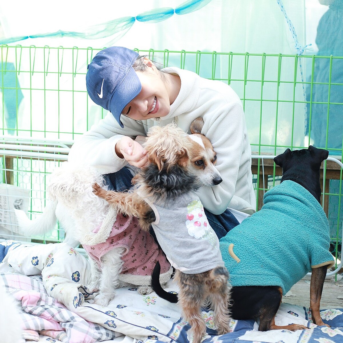 對於狗狗相當有愛,過去在拍戲空擋間,也曾到過動物之家,去關愛這些原本在街上流浪的孩子們,展現出她溫柔可愛的一面。