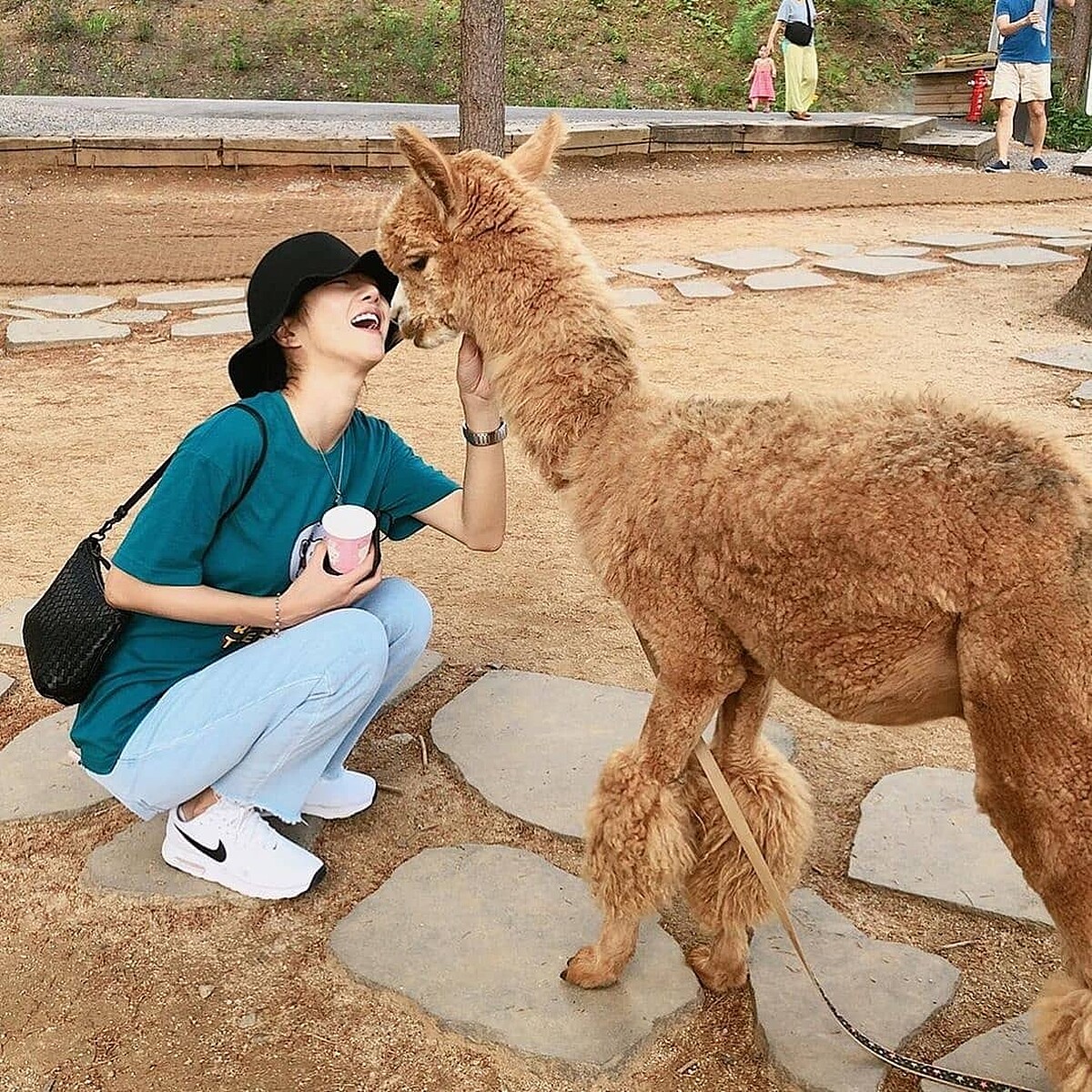 而且不只有狗狗或貓咪,就連看見動物園的草泥馬,她也要熱情地打招呼,真的是像天使般的人啊!