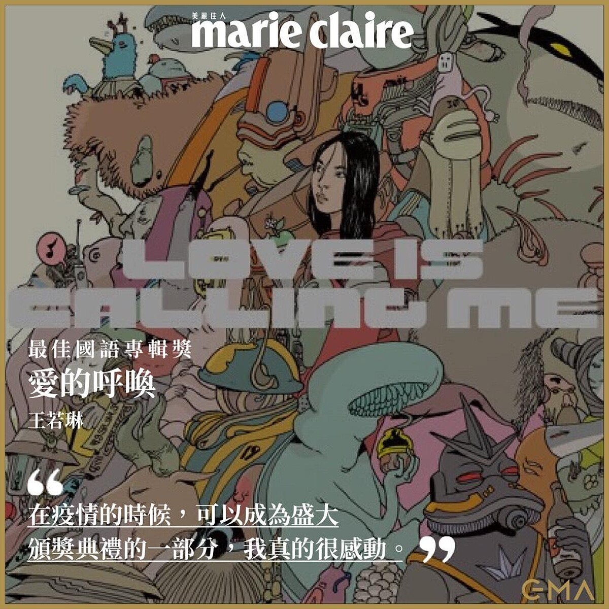 因疫情未能親臨現場,由工作人員代領:「這張專輯能得獎,讓我覺得是個奇蹟。去年四月我離開了前公司,年底就發了這張。整張專輯製作時間都不到8個月,從未試過在這麼短的時間裡,要去完成這個巨大的任務,讓我覺得人的小宇宙,都是被逼得爆發出來的。因為我舊歌的版權,還在跟我前公司訴訟中,我很無力,我唯一能做的,就是以最快的速度,創作新的作品,努力在孤立無援的時候,化悲憤為力量。謝謝我的團隊,當時核心團隊只有3個人,加上我4個人,每天大家都很累,而且壓力很大,但是我們做到了。我知道我的要求很高,我們很多時候都在細調別人都聽不出的細節,但是我們還是做到了。還要感謝這張專輯幕後許多幕後功臣,許多MV導演等等。最後感謝我的家人、歌迷以及上帝。」
