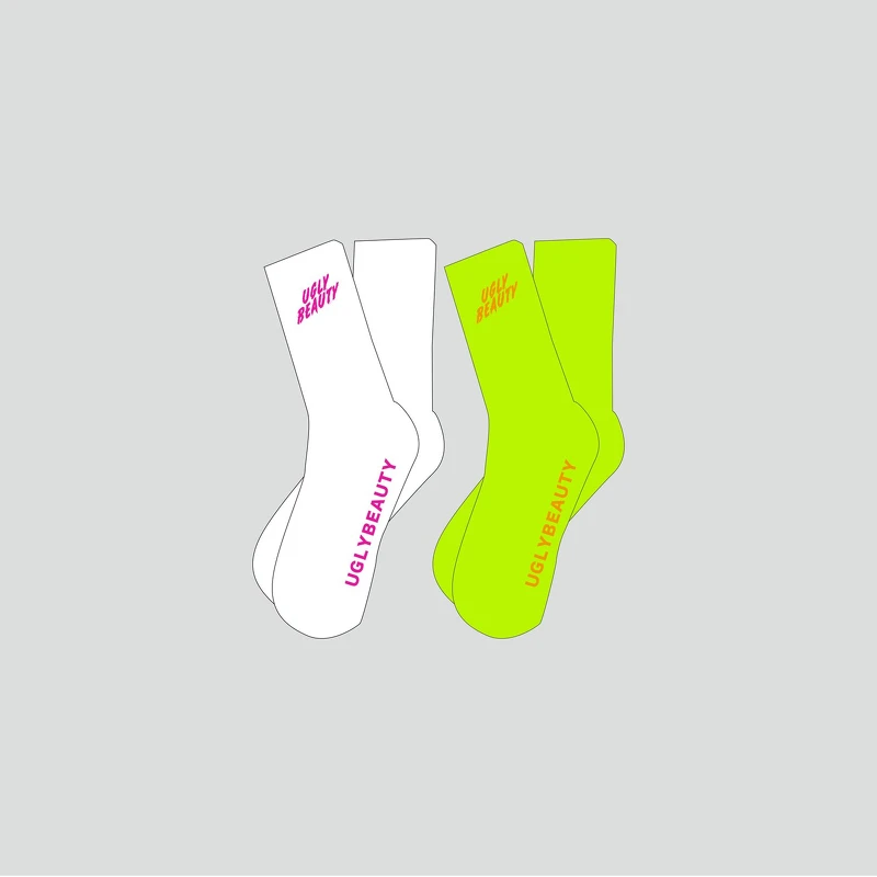 Ugly Beauty 運動襪白+螢光綠2入 NT$600