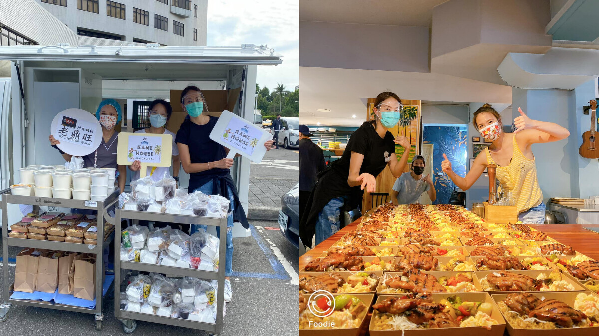 她透露送振興醫院的50個便當是Kame House 的BBQ Chicken、50個是Rainbow hotdog套餐:「接到訂單的餐廳都好高興!自動加碼加料不加價!我的朋友老鼎旺麻辣火鍋的股東也贊助30份功夫銷魂麵!滿滿的愛心。」