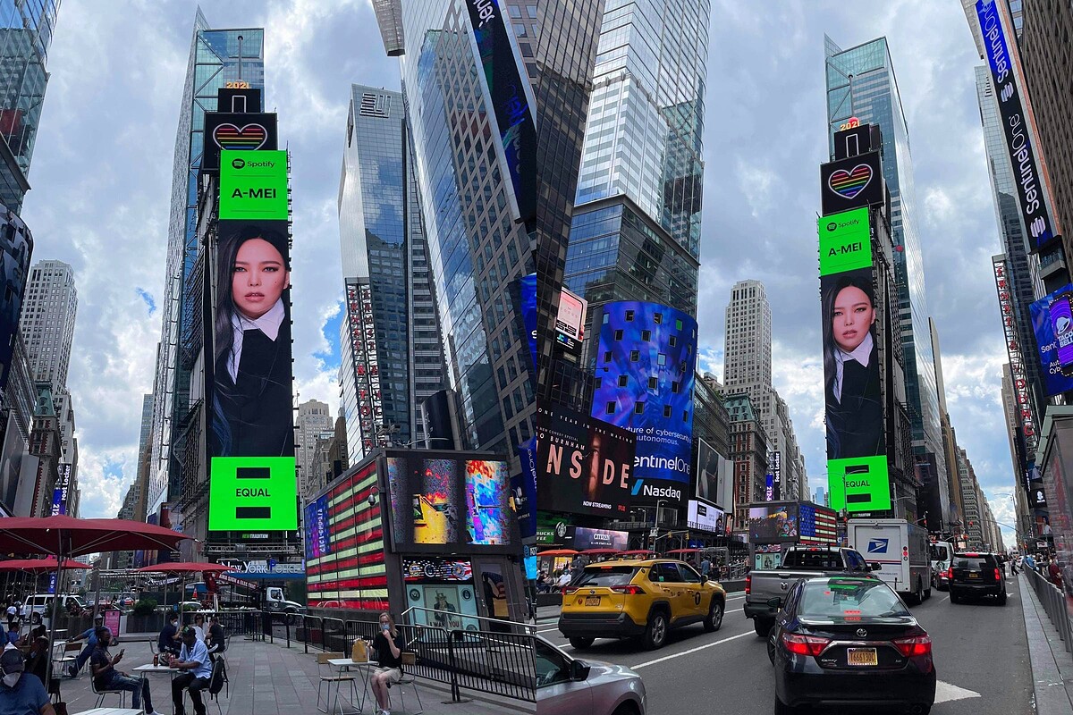 張惠妹A-MEI登上紐約時代廣場巨幕,代表Spotify EQUAL為女性平權發聲