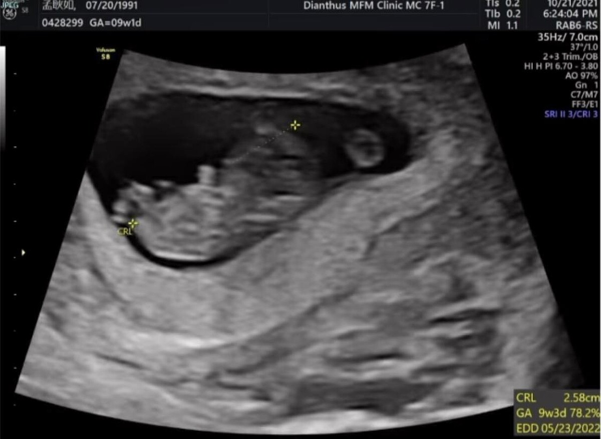 孟耿如在臉書寫下:「終於~~~可以開心的跟大家分享這個消息,目前不知道是小黃瓜還是黃玉米已經在肚子裡三個月了,上面的超音波影片是兩個月的時候他的小手手在跟我們打招呼。」
