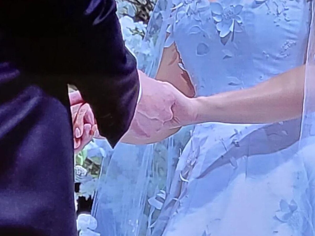 說完誓詞後,朴信惠流下幸福的眼淚,老公還貼心地幫她擦去眼淚,相當動人。