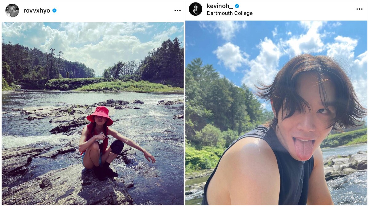 2021年8月29日Kevin Oh生日時,曾經在IG上貼出溪邊戲水的照片,刻意把地點設在一個截然不同的位置。隔沒幾天,孔曉振也上傳了溪邊戲水的照片,看來與Kevin Oh的背景非常相似。後來孔曉振才承認,他們當時一起在京畿道楊平的別墅慶生,原來隱隱藏著深深的愛意啊!