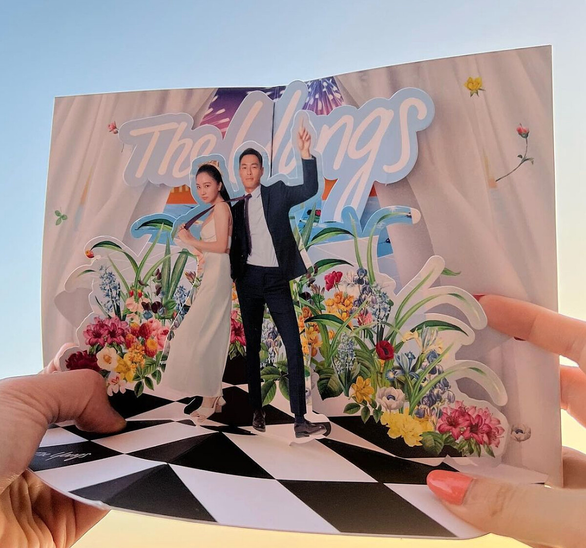 早先小倆口也在IG曬出喜帖,寫著「The Yangs」,裡面則是嬌妻Melinda拉著楊祐寧領帶的立體婚紗合照,充滿俏皮風格。
