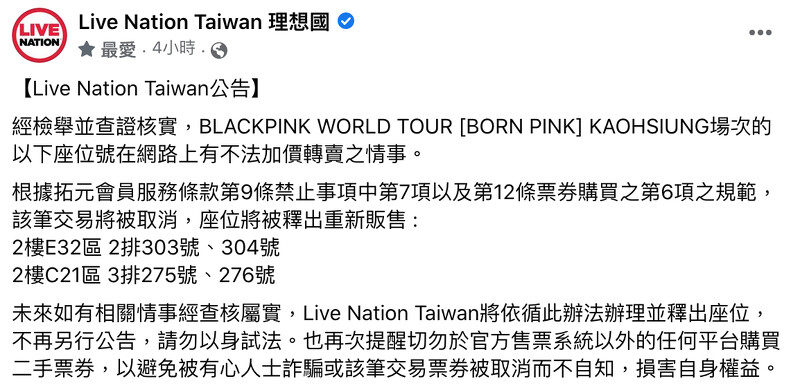- BORN PINK座位特區NT$8,800 (票價含Sound Check粉絲福利)