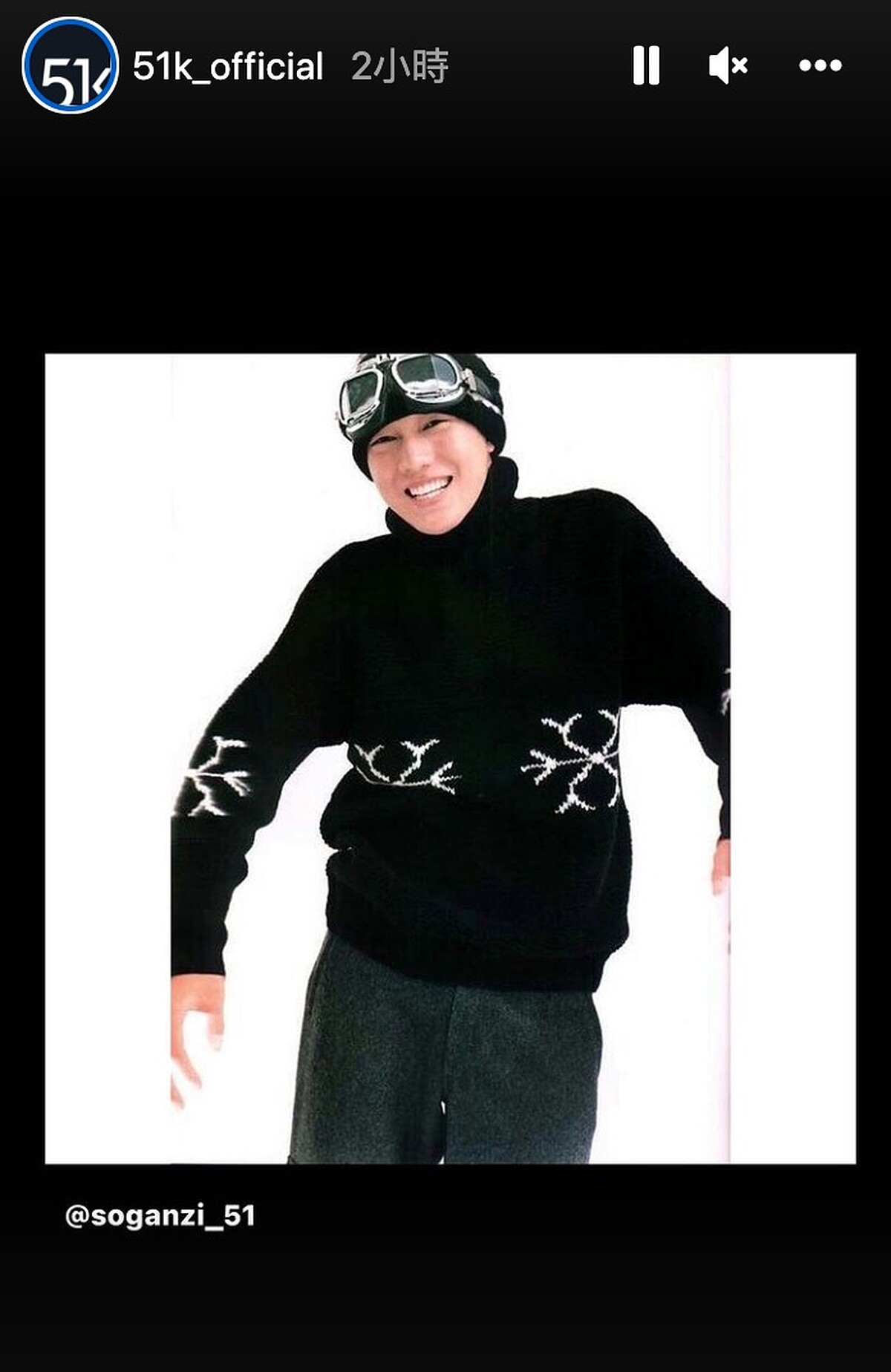 蘇干支是日本粉絲替蘇志燮取的暱稱,干支意指很有型的大叔。蘇志燮這次也用soganz替IG命名,增加了不少親切感!首PO貼上個人穿著黑色毛衣與滑雪眼鏡的照片,顯露出一股詼諧感,貼文寫著這是一個新的開始。