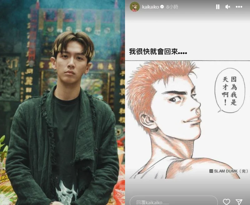 柯震東日前才在投入Netflix新劇《乩身》拍攝,沒想到卻傳出意外傷臉破相,縫了近30針,消息曝光後讓粉絲們相當擔心,不過隨後他也在IG限動報平安,貼出漫畫《灌籃高手》櫻木花道的照片,寫下「我很快就會回來」。