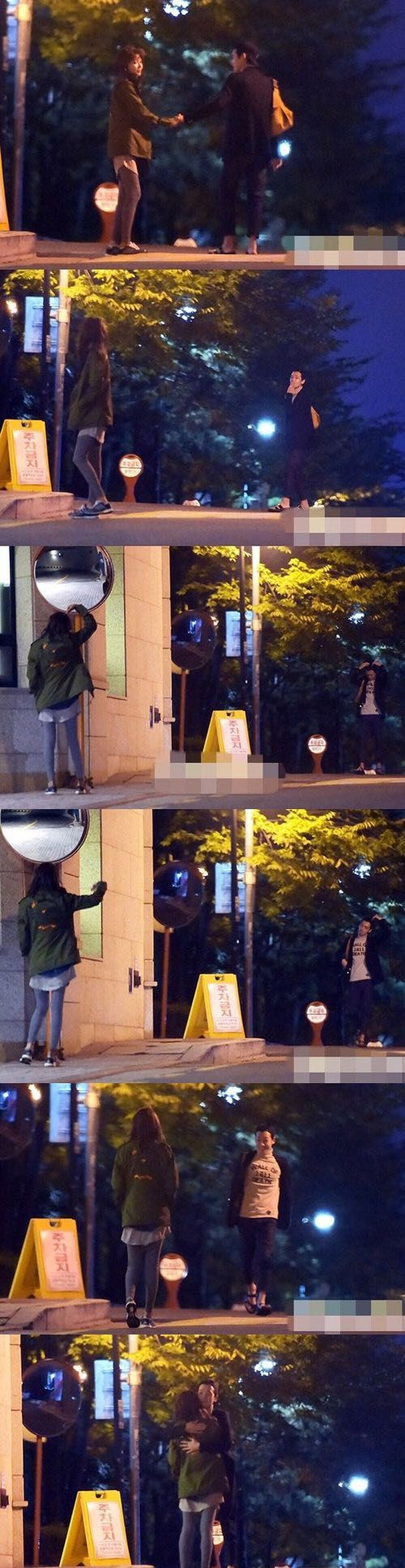 照片捕捉到兩人約會完後依依不捨告別的模樣,道別時還不斷對著對方比愛心,結果沒走幾步鄭敬淏又小跑步飛奔回去抱住秀英,兩人的互動真的太有愛,隔著照片都能感覺到兩人的甜蜜氛圍啊!
