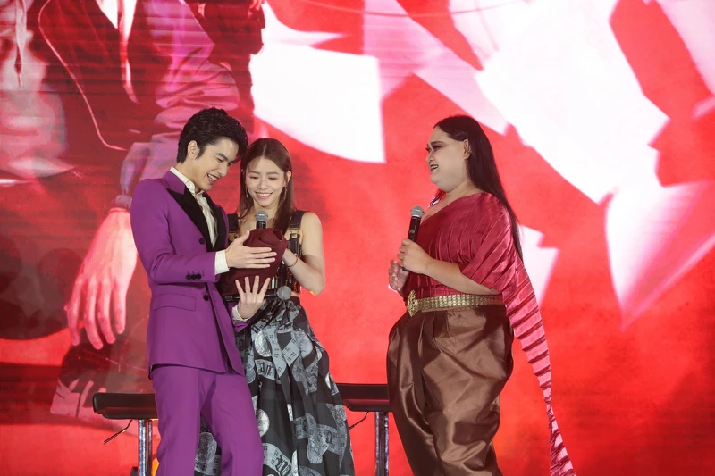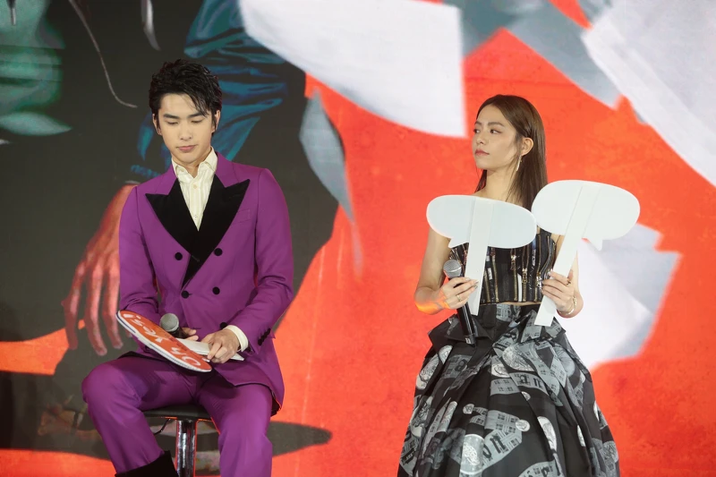 不料才一說完,現場就突然暗燈,在大家都還沒反應過來之時,台下便出現打扮成泰國經典鬼片《淒厲人妻》中主角「鬼妻娜娜」的KOL,逼真裝扮跟恐怖氛圍引起大家驚呼,曾敬驊跟宋芸樺相當好奇地主動跟「娜娜」互動,「鬼妻娜娜」是泰國著名的女鬼。