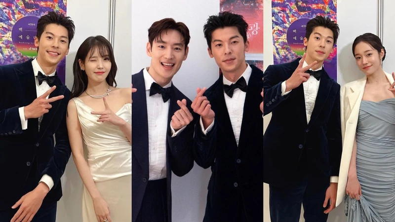 許光漢與李帝勳合體頒獎讓典禮衝上另一個高峰。許光漢準備許久的韓文,終於派上用場,表示希望和韓國演員合作的他,讓全場氣氛嗨到最高點。而在頒獎典禮後台,當然不能放過捕捉大咖明星的機會,除了李帝勳之外,也和IU、盧侖㥠、金鍾國合影,實在太可愛了啦!