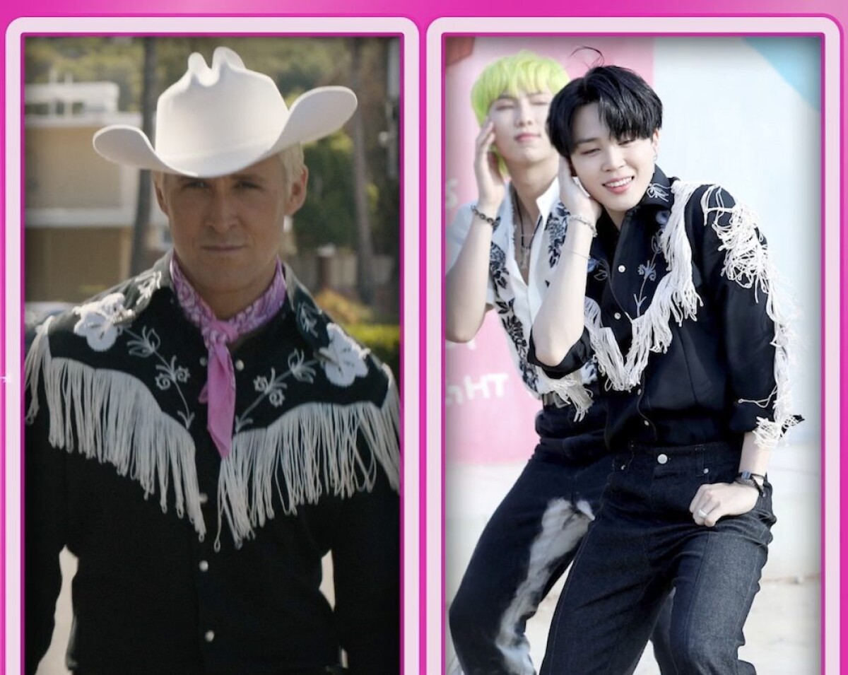 隨著《芭比》上映帶來一股粉紅熱潮,也讓「芭比」瑪格羅比和「肯尼」萊恩葛斯林再度成為討論焦點,不過眼尖的影迷則發現,電影中「肯尼」這套牛仔裝居然和JIMIN撞衫了!