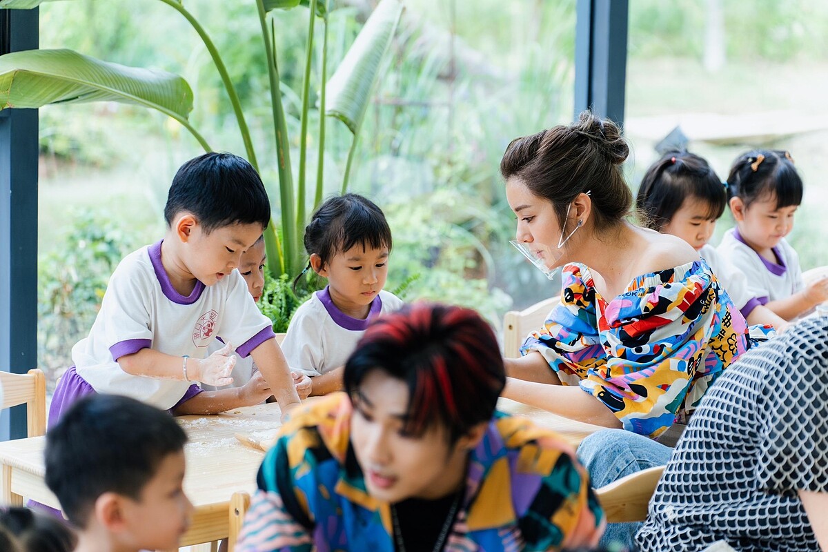 另外一個活動現場,是由莎莎化身幼兒園老師,帶著小貴賓體驗手作地瓜園,莎莎為了安撫孩童,先準備一段帶動唱!小朋友們一聽到是超紅洗腦歌曲《花園種花》,異口同聲唱著:「在小小的花園裡面挖呀挖呀挖~種小小的種子開小小的花」,不斷地唱下去,一直停不了!