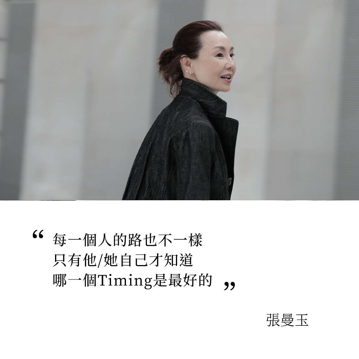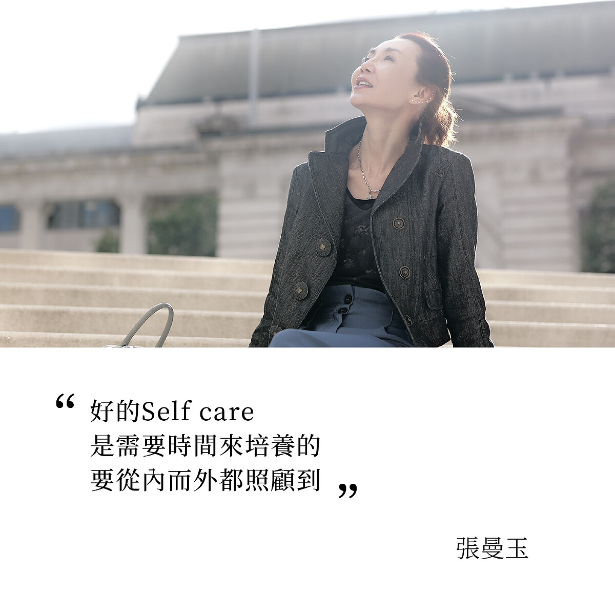 「每一個人的路也不一樣,只有他/她自己才知道哪一個 timing 是最好的」,到底要怎麼做到呢? 張曼玉分享第一個方式就是,一有空就會給自己很多me time,人總是在與自己相處的過程中才知道自己喜歡甚麼? 不喜歡甚麼? 要怎麼才能讓自己開心,活在當下。張曼玉也講出了很多人的心聲,他說自己以前每天都很忙,所以沒有注意到「愛自己」,還好現在還不太晚,好的self care是需要時間來培養的,要從內而外都照顧到。