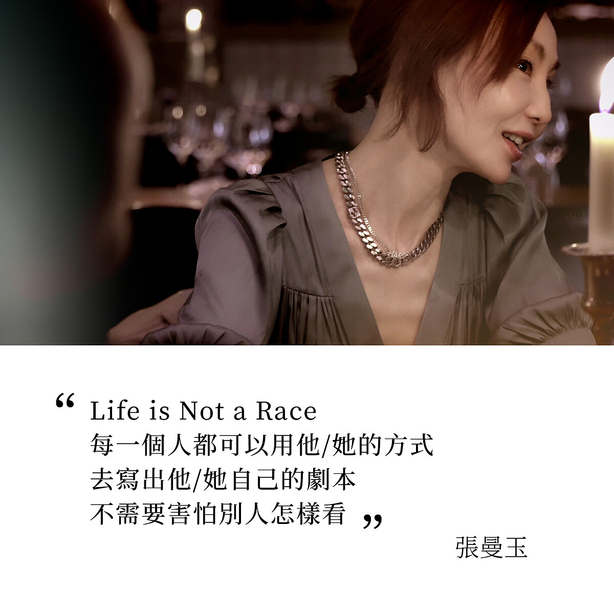 張曼玉身為影后,當年她決定淡出眾人視線,把重心放回自己身上,在外人的眼光看來或許很勇敢,但是在張曼玉心中,這是一個了解自己的過程,明白了之後反而生活就變得更輕鬆,只需要很簡單的東西就會開心。張曼玉將演藝生涯奉獻給迷人的電影,透過每個角色將生活投射在大螢幕上,鎂光燈前她是超級影后,但透過張曼玉的這支影片,我們看到的是實實在在的張曼玉,一直是她,什麼都沒有改變。