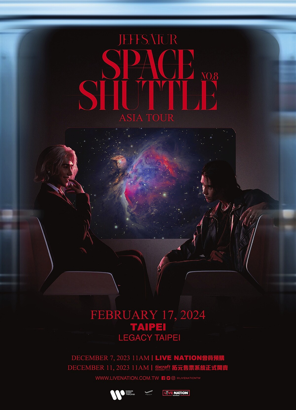 不只是演出《黑幫少爺愛上我》打開台灣知名度,演而優則唱的Jeff Satur,從中文版的熱搜曲〈Fade (我最愛的就是你) 〉、TikTok挑戰曲〈Dum Dum 〉、《黑幫少爺愛上我》主題曲〈Why Don't You Stay〉等,至今生涯數位串流已突破3億6000萬收聽,這一次帶著巡演《Jeff Satur : Space Shuttle No.8 Asia Tour in Taipei》首站選定台北啟程,絕對要去朝聖。