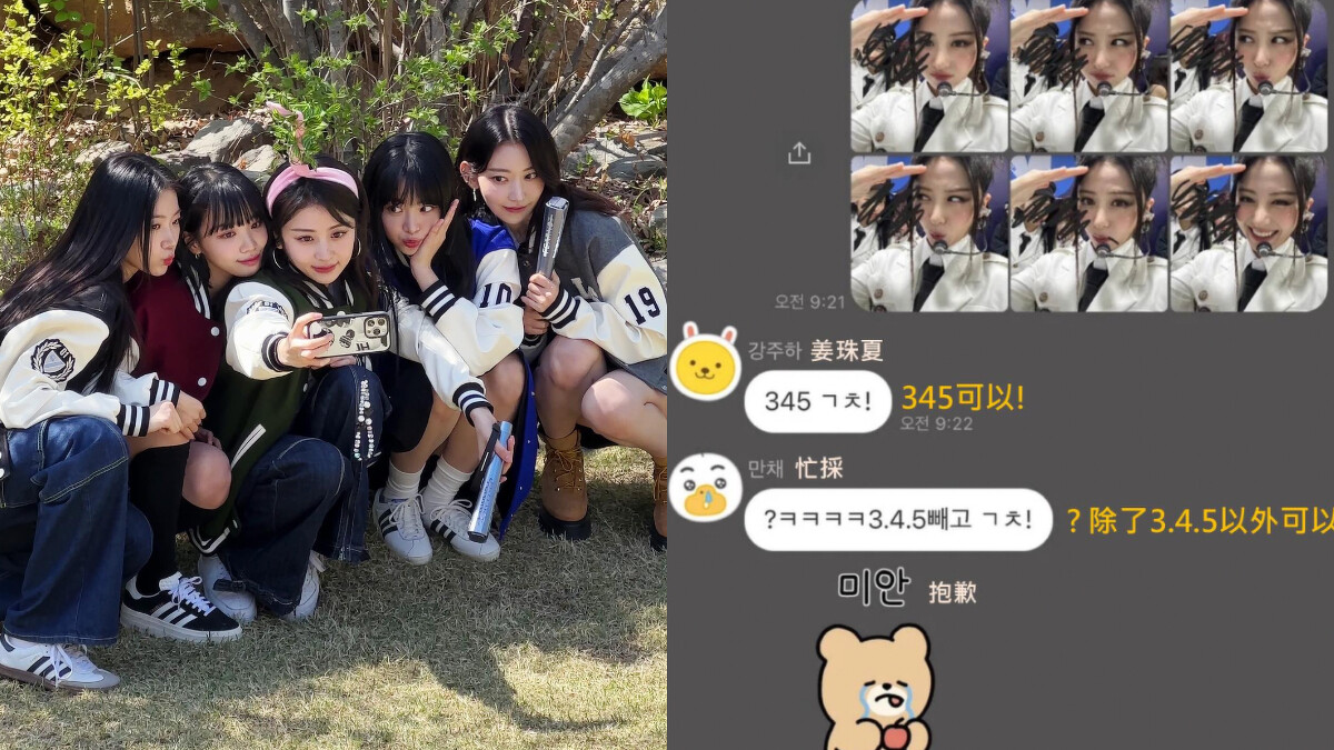 團體合照不一定每個人都好看,因此LE SSERAFIM訂下了一個規則,合照上傳之前必須先傳到群組審核,得到其他四位成員的許可之後才可以上傳。從對話能看到,允真將自拍照後面誤入的成員,特別塗黑之後還傳到群組詢問可不可以上傳,意外真摯的形象守護實在太可愛了!