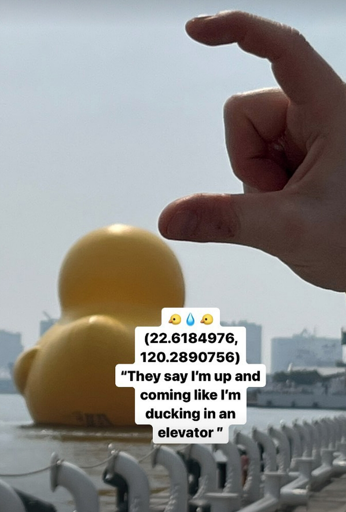 就連紅髮艾德Ed Sheeran也抗拒不了黃色小鴨的魅力,他在演唱會前一天在限動曬出小鴨照片,還將經典歌曲〈You Need Me, I Don't Need You〉改詞,把「They say I'm up and comin' like I'm fucking in an elevator」的「fucking」改成「ducking」,實在太可愛。