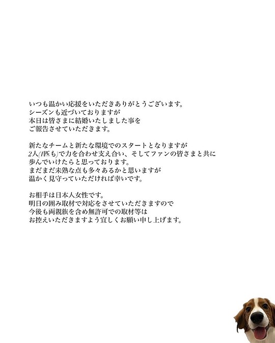 大谷翔平IG發結婚聲明,妻子是日本人