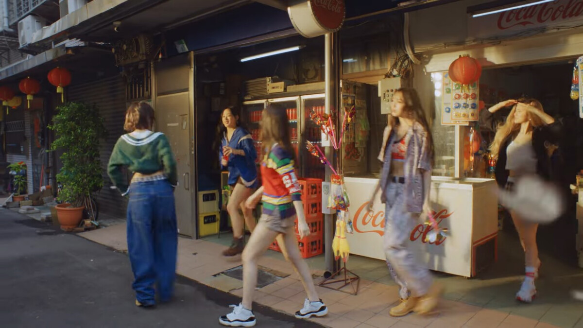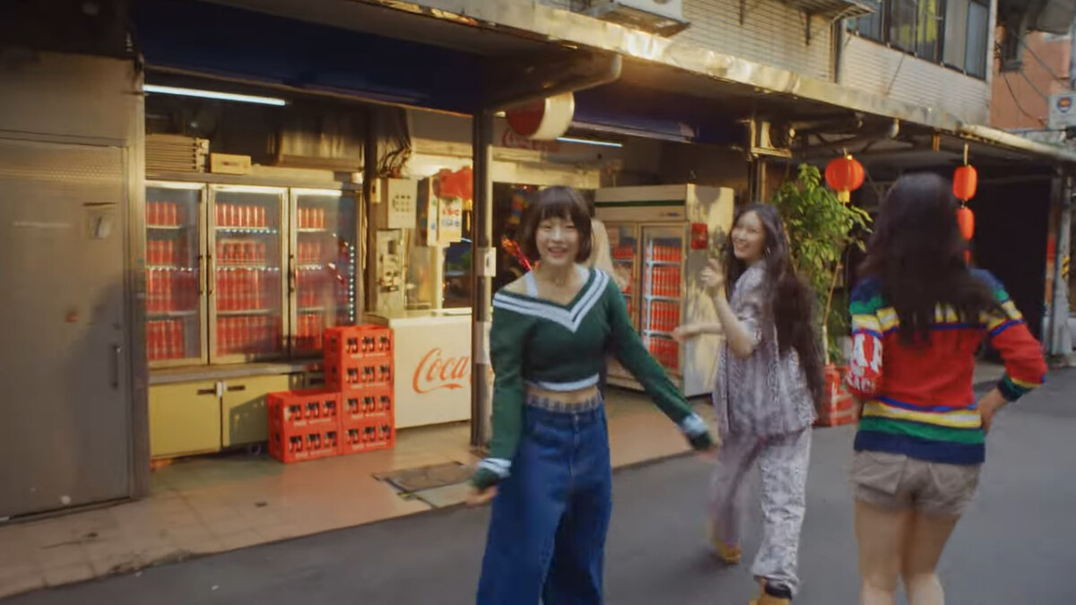 NewJeans在MV中踏著開心的步伐,走進外觀都是可口可樂的傳統柑仔店,來踩點的Bunnies雖然看不見與MV一樣的布景,但還是可以像她們一樣享受挑糖果的樂趣,順便找回童年的懷舊時光。