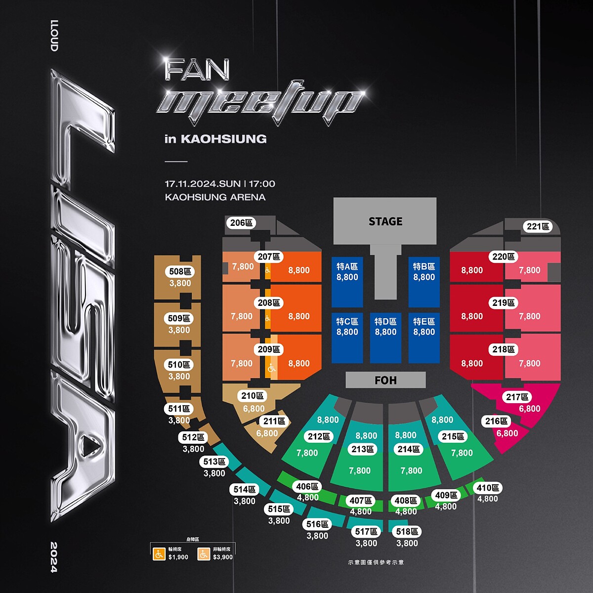 票價:NT$8,800、NT$7,800、NT$6,800、NT$4,800、NT$3,800、NT$3,900(非輪椅之身障席)、NT$1,900(輪椅席)