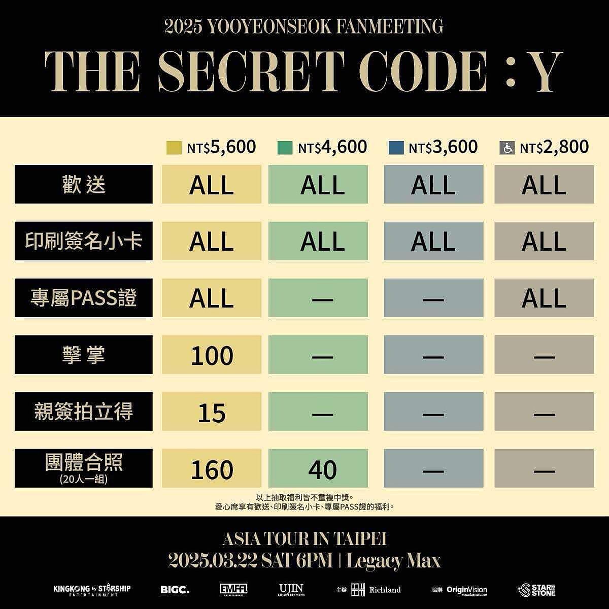 寵粉的柳演錫也特別準備了一系列專屬粉絲的福利,不僅有團體合照與歡送環節,也有擊掌的專屬福利,讓影迷們近距離感受柳演錫的誠意與溫暖,回饋粉絲長久以來的支持與熱愛,粉絲見面會門票將於2025年1月26日中午12點透過Ticket Plus遠大售票系統正式開賣。