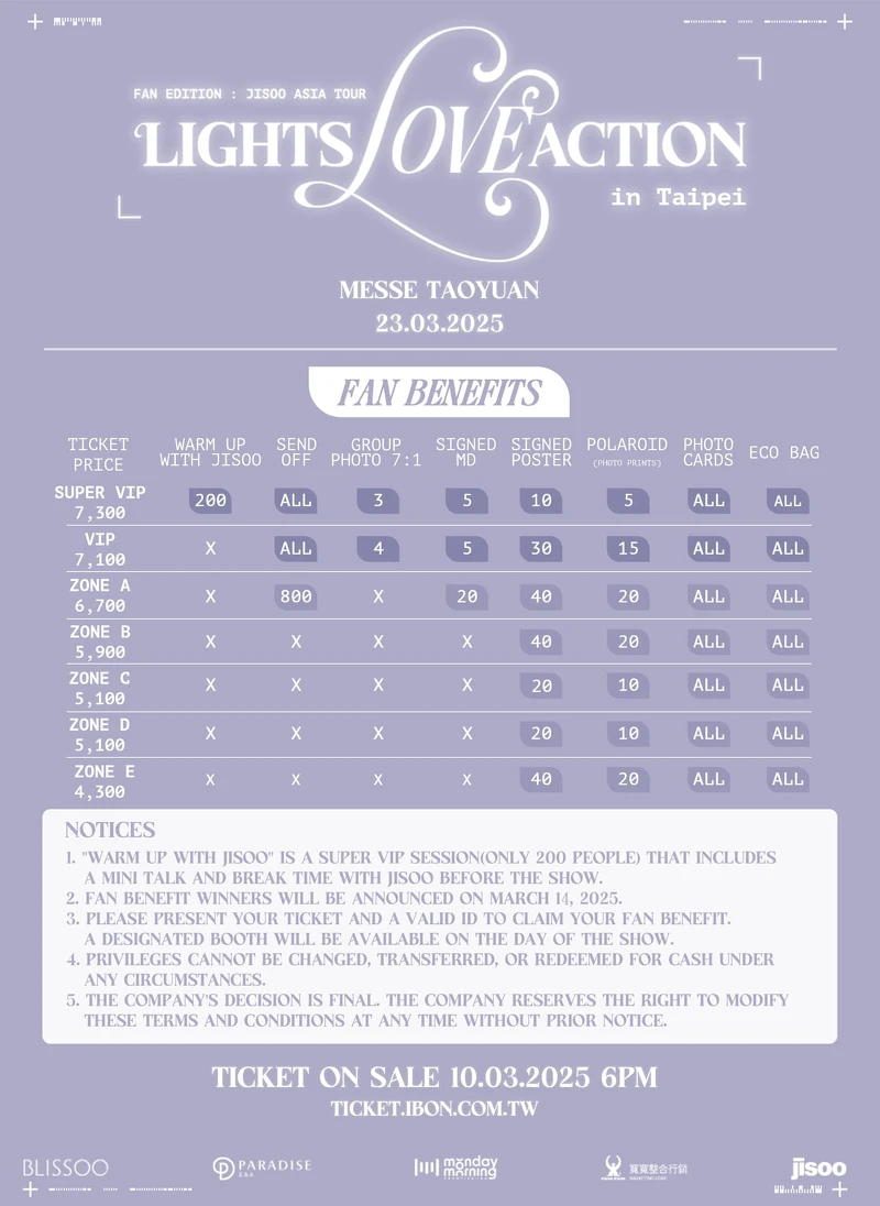 Jisoo粉絲見面會演唱會資訊《FAN EDITION : JISOO ASIA TOUR "LIGHTS, LOVE, ACTION!" IN TAIPEI》