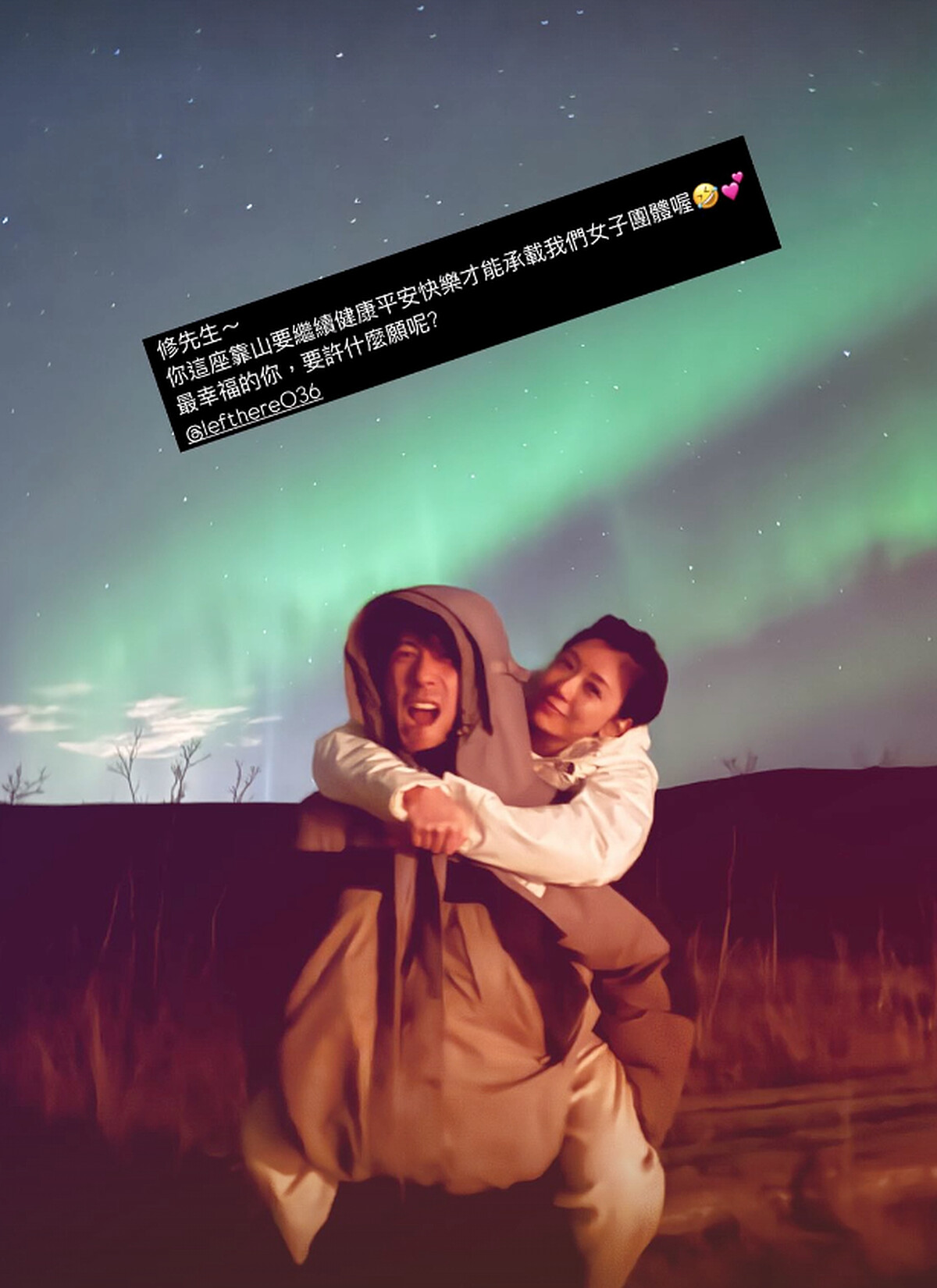 3月6日是修杰楷42歲生日,賈靜雯更不忘在社群祝福兼告白,除了甜蜜曬出站在極光下,修杰楷揹著她的合影,賈靜雯表示:「修先生~你這座靠山要繼續健康平安快樂才能承載我們女子團體喔,最幸福的你,要許什麼願呢?」