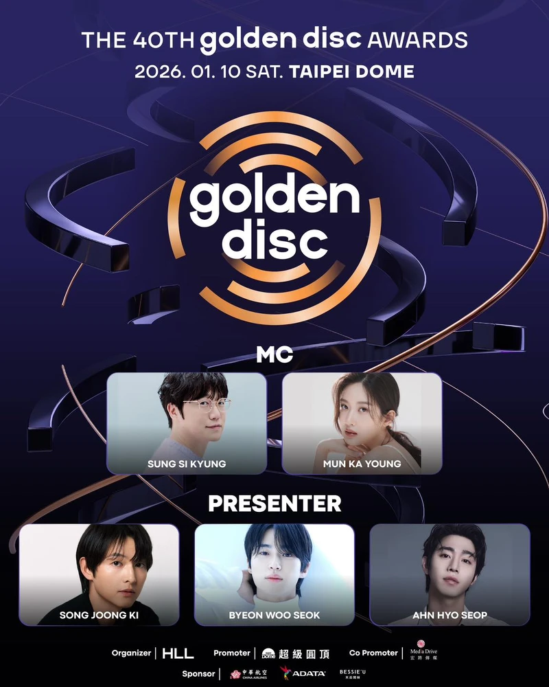 不只2025 AAA頒獎典禮(Asia Artist Awards),現在金唱片獎(Golden Disc Awards)也宣布要來台灣舉行,趁著邁入40週年,2026金唱片頒獎典禮將於2026年1月10日降臨台北大巨蛋。