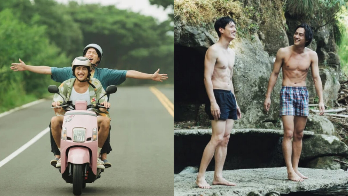 2024年上映的電影《我在這裡等你》,由兩位高顏值男神范少勳、香港演員劉俊謙合組CP,再展開尋覓「能夠通往天堂的鯨逝灣」旅程中發現一座秘湖,他們便脫到只剩四角褲戲水,兩人皆秀出精實好身材,范少勳的鯊魚線更令人難以移開目光,是不是該把這部片補起來?